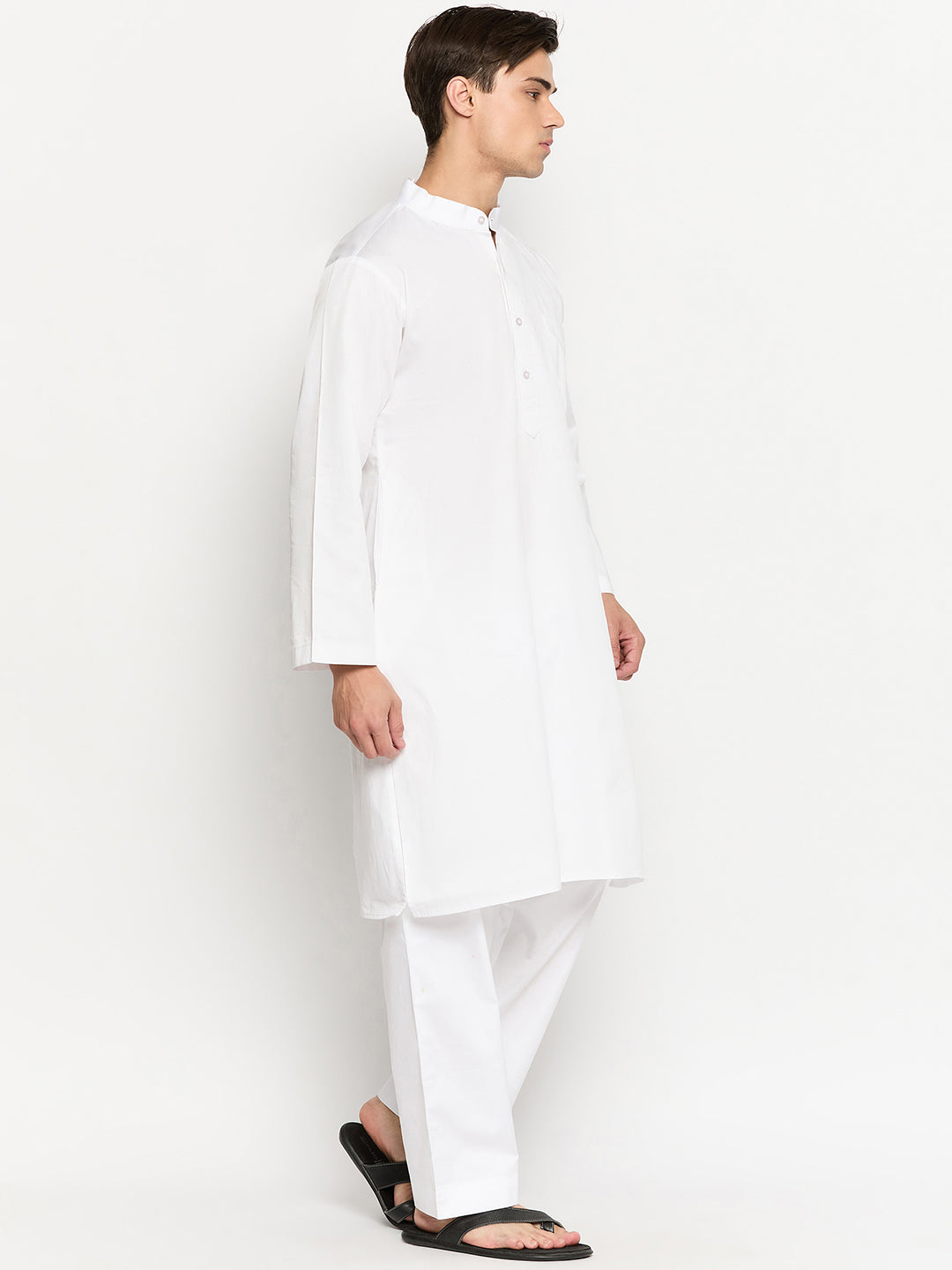 Step into timeless elegance with this men’s white kurta pajama set, designed for comfort and classic style. Crafted from soft, breathable fabric, this solid kurta features a mandarin collar, full sleeves, and a relaxed fit, making it ideal for daily wear, festive occasions, prayers, and traditional functions. Paired with comfortable white pajama pants, it offers effortless sophistication. Perfect for weddings, festivals, ethnic wear lovers, and modern men seeking simple, stylish, and comfortable Indian traditional clothing.