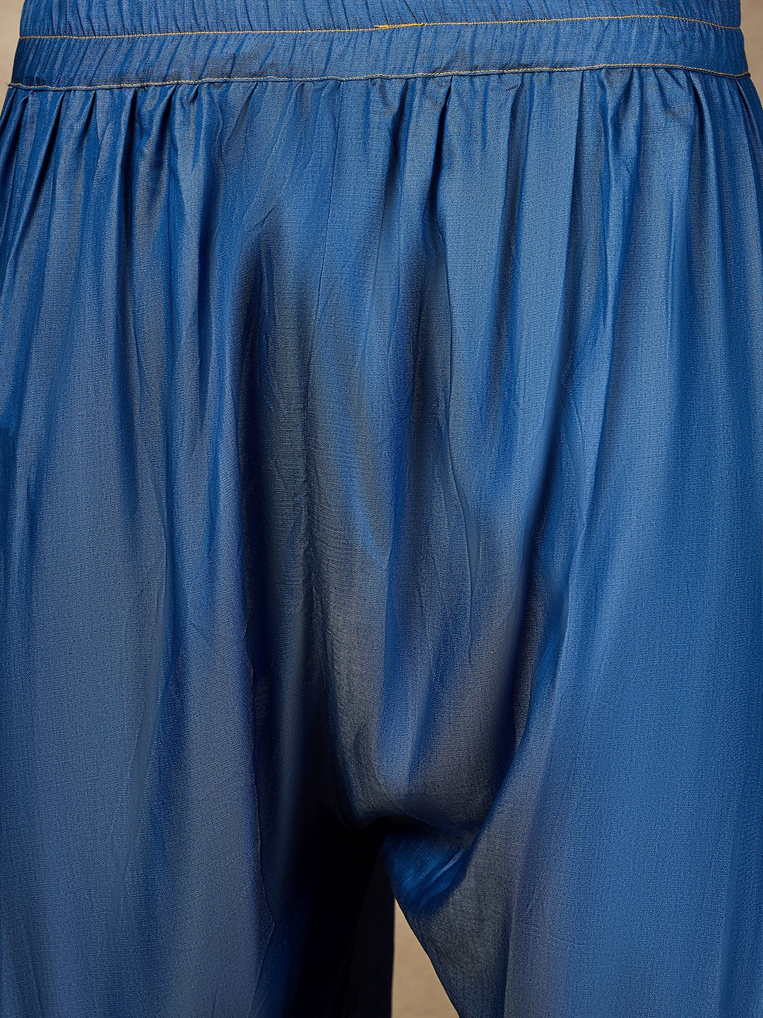 This blue solid Pathani kurta pajama set for men is crafted from premium denim fabric for durability, comfort, and a modern look. Designed in a relaxed fit, it features a classic shirt collar, full cuffed sleeves, and a straight-cut pajama. Perfect for casual wear, festive occasions, parties, and everyday ethnic style, this men’s denim Pathani suit blends traditional appeal with contemporary fashion, making it a versatile and stylish ethnic wear essential.